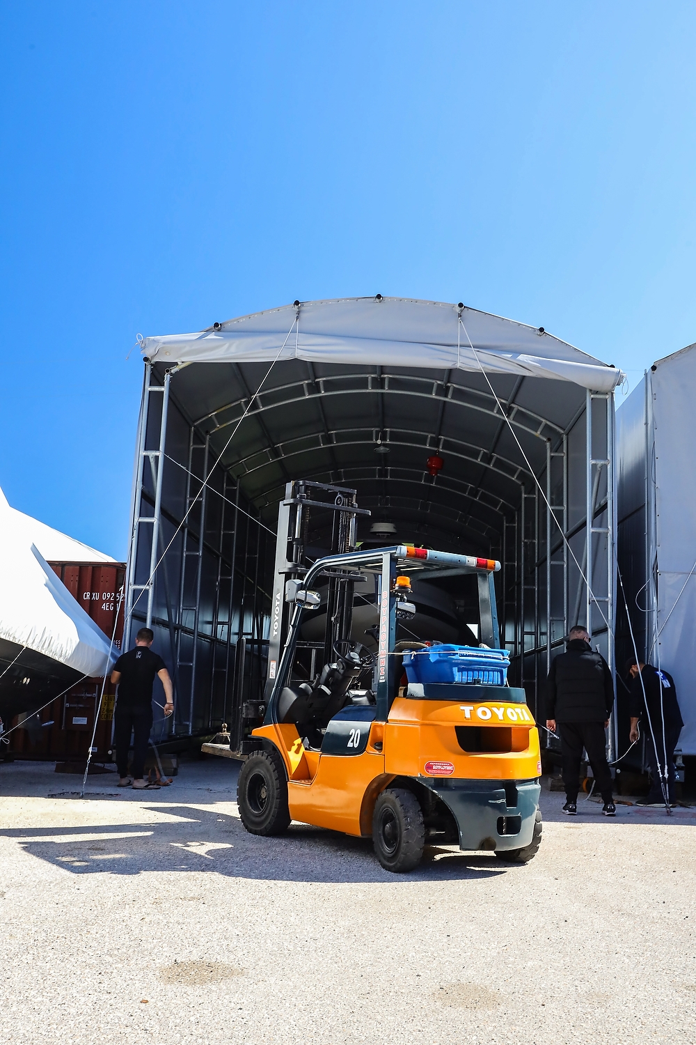 - SHEDS: Steelwork heavy duty structural design. Heavy bases, purlins and polyurethane panels on the roof for better insulation and protection from the rain. All sheds are equipped with electricity, water, air and light.