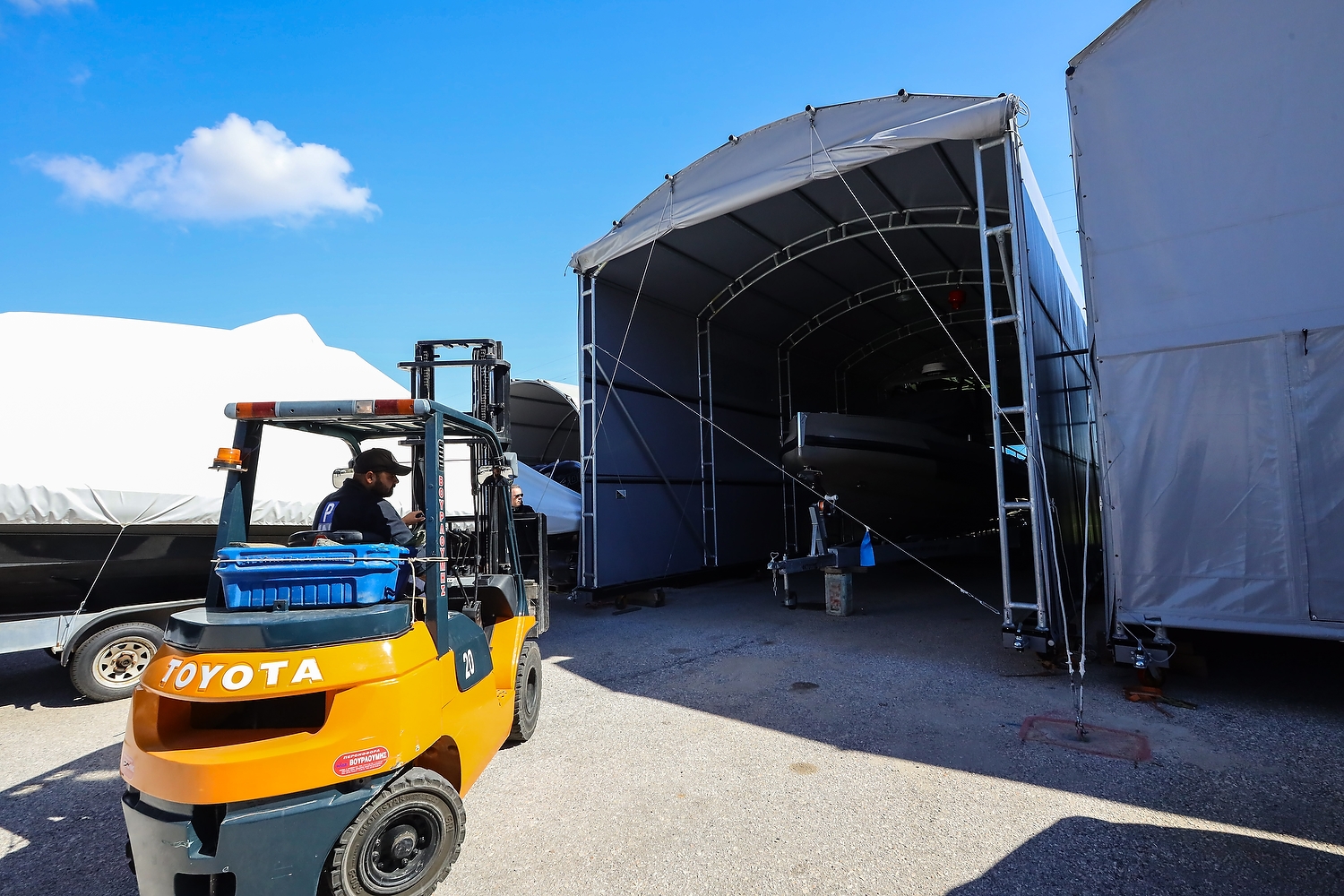 - FACILITIES FEATURES: fire detection and firefighting system. Industrial flooring, three phase power, air system, lighting, ventilation, fire resistant doors, alarm system, closed circuit television. Protect your boat completely from air, dust, and rain.